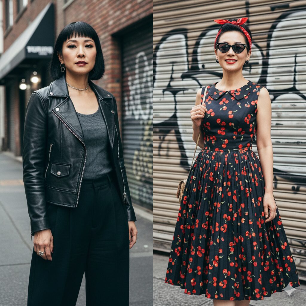 この二つのスタイルを自由にミックスすることで、あなたの今日の気分にぴったりの「大人のロック」が見つかるはずです。週末はロカビリーでノスタルジックに、平日はアダルト・パンクでシャープに、と使い分けるのも楽しいですね!