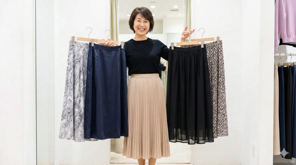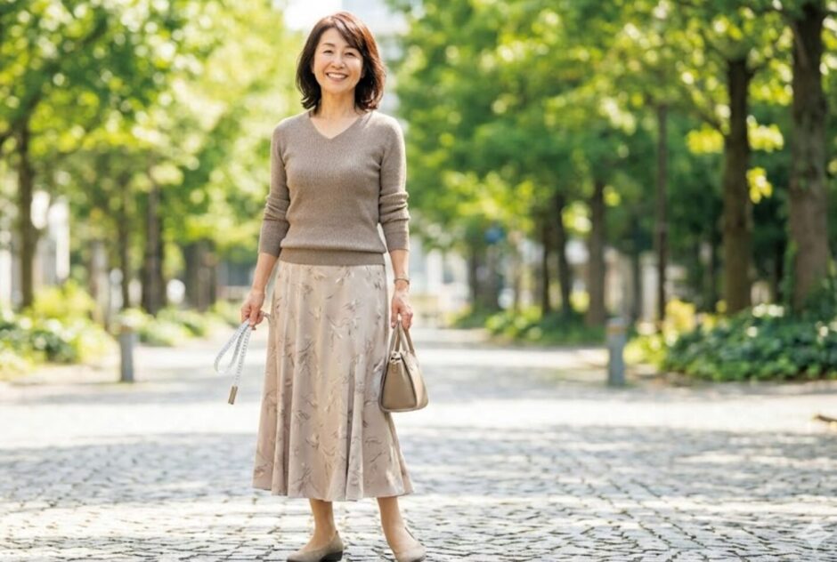 さて、ぴったりのスカートを手に入れたら、次は「どう着こなすか」ですよね。「服はあるのに、着ていく場所がない」なんて言わせません!私たちが自信を持って外出できる、150cm×60代のための「正解コーデ」を、シーン別にご提案します。