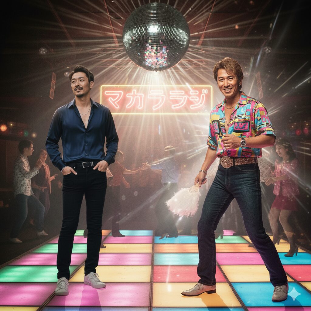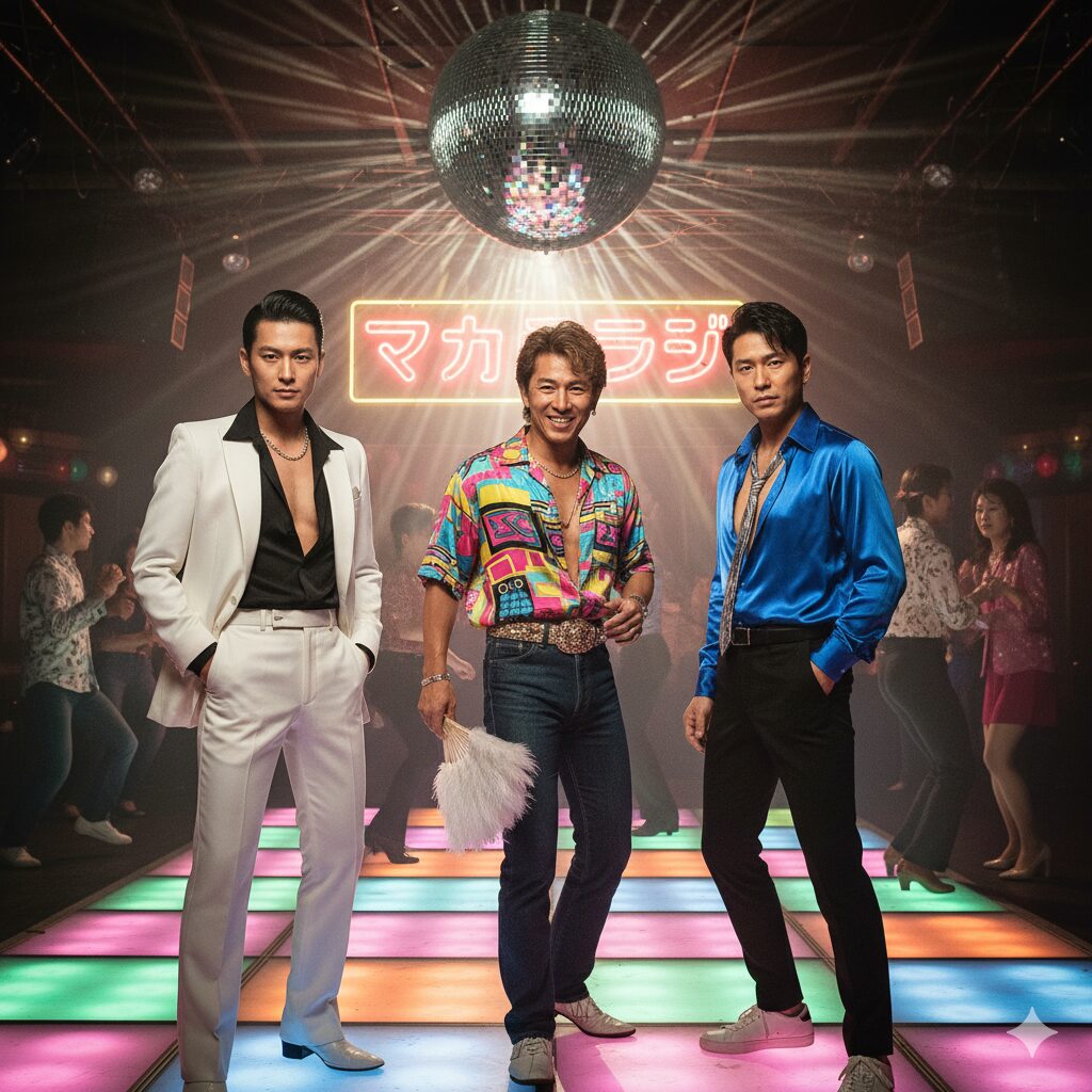 ネットで検索しても、アイテムが羅列されているだけで「どう着こなすか」が全然わからない…。「スパンコールパンツは派手すぎるかな?」「光沢シャツって、どのくらいテカっていれば正解なの?」と、不安になる気持ち、すごくよくわかります。当時の写真を見ても、今やるには少し古くさく見えそうで、「イケてる男」になるどころか、ただのコスプレおじさんになってしまうんじゃないか、と悩んでいませんか?