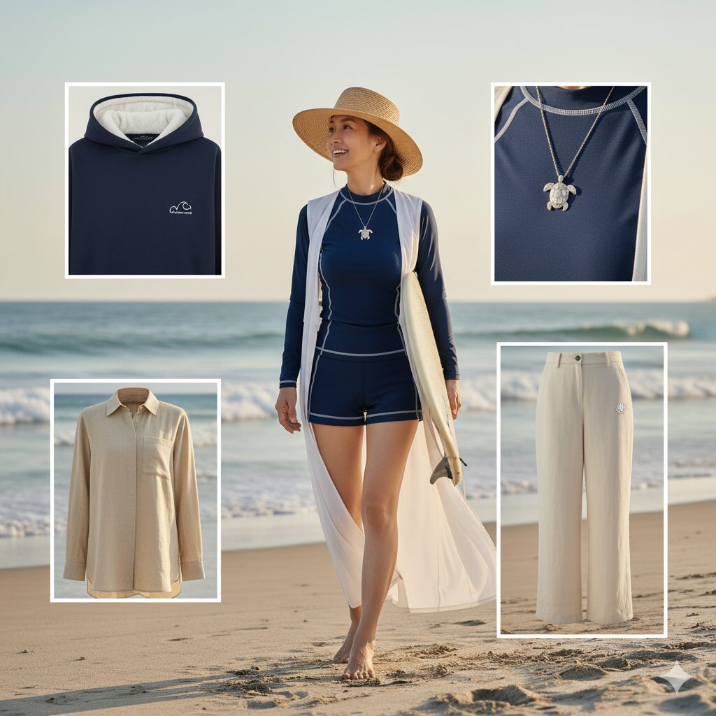 40代・50代にとってのサーフファッションは、もはやファッションのジャンルを超えた「アクティブな自己表現」の手段です 。質の高いラッシュガードは、あなたの肌を守る美容液のようなもの。上品なアイテムは、あなたのライフスタイル全体を格上げする投資のようなものです 。