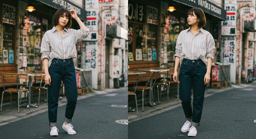- 定番アイテム:シャツ、デニム、ジャケット、スニーカーなど、ボーイッシュスタイルの基本となるアイテムを揃えましょう。
