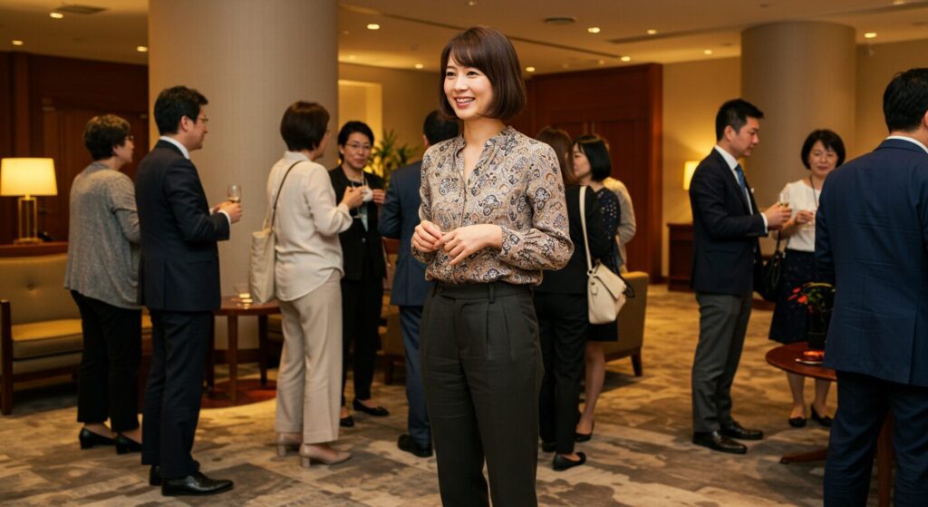 女性の懇親会における服装は、上品さと機能性を兼ね備え、場の雰囲気に合わせた選択が求められます 。ここでは、そんなあなたの悩みを解消し、自信を持って懇親会に臨めるような具体的なヒントをお届けしますね。