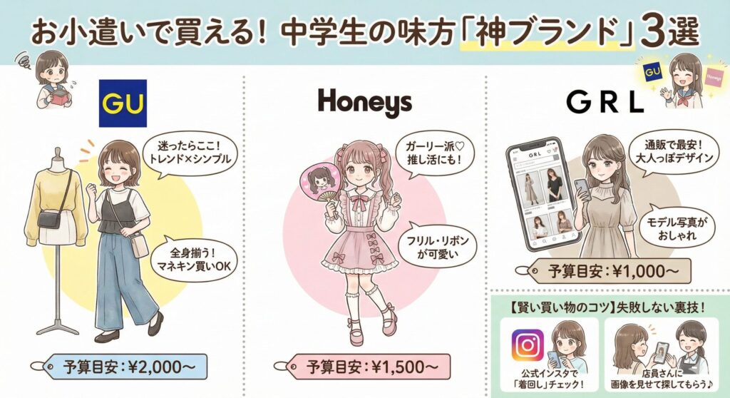 大丈夫です! 実は、おしゃれな子の多くはプチプラブランドを上手に使っています。ここでは、「安くて可愛くて、ハズレがない」3つのブランドを紹介しますね。