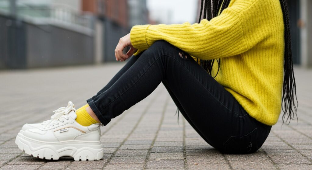 「ちょっとお姉さんっぽく」見せたいという気持ち、分かります!具体的には、落ち着いた色合いの濃いめデニムを選ぶ と上品さが増しますよ。また、足元は厚底スニーカー や厚底ブーツ でスタイルアップを狙いつつ、全体をすっきりまとめるのがコツです。奇抜さは避けて、洗練されたシンプルさを意識すると良いでしょう。