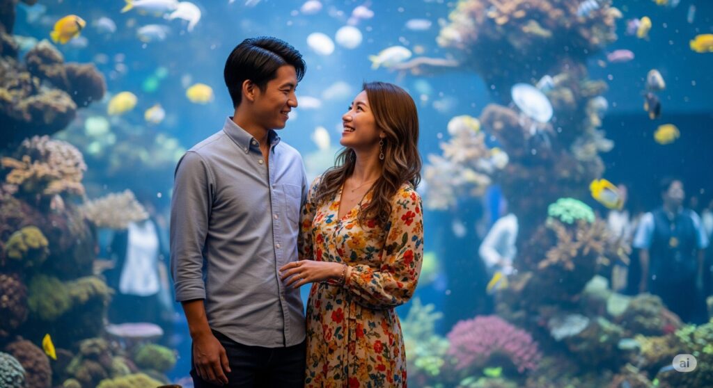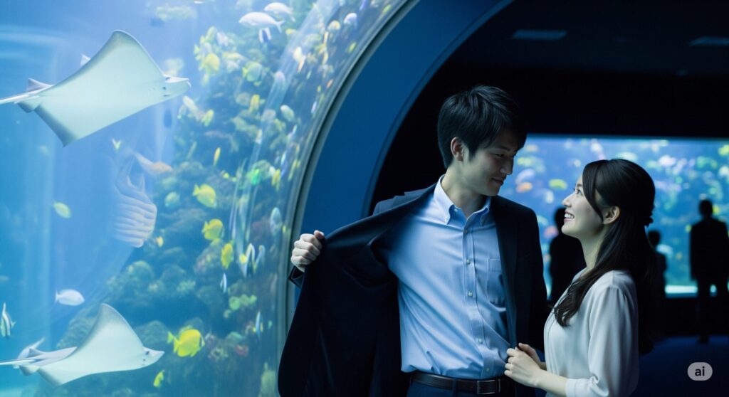 大切なのは、服装選びと同じくらい、デートを心から楽しむことです。魚たちのユニークな動きに笑ったり、幻想的な光の演出に感動したり、素直な気持ちを表現してみましょう。