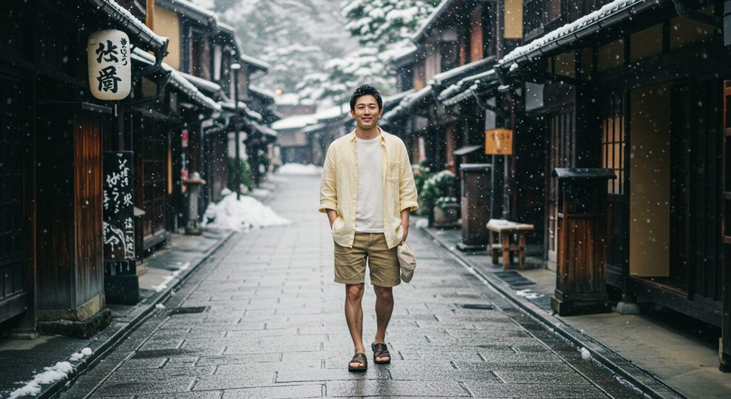 例えば、真夏日に厚手のダウンジャケットを着ている人や、真冬日にタンクトップに短パンといった格好をしている人を見かけることはありませんか? このように、明らかに気温や天候と合っていない服装が、「季節感のない服装」の典型例と言えるでしょう。