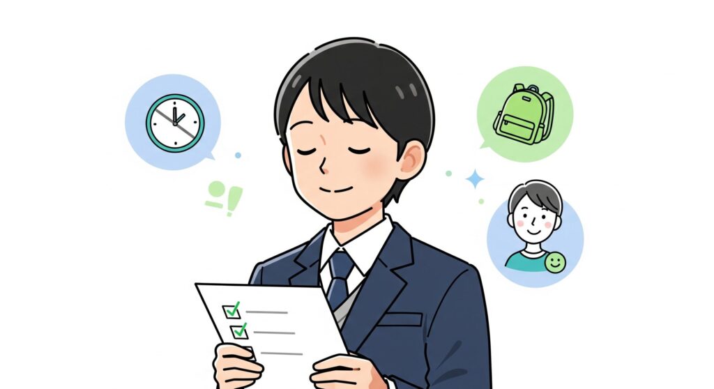 この記事では、服装の「正解」はもちろんのこと、周りの受験生の様子や、服装以外の持ち物、面接前の過ごし方まで、あなたの不安を丸ごと解消できる情報をお届けします。さあ、一緒にこの不安を乗り越えて、自信を持って本番に臨みましょう!