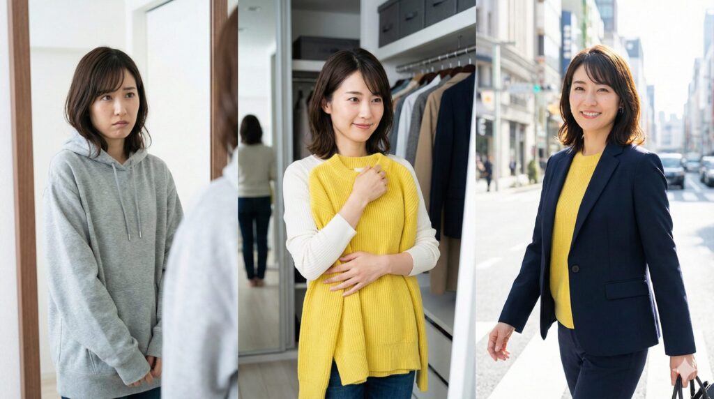 もしあなたが「もっと自信を持ちたい」「親しみやすい人に見られたい」と思っているなら、内面から変えようとするよりも、まずクローゼットの中身を変える方が早いかもしれません!