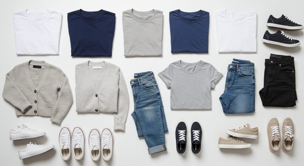 これらのアイテムを組み合わせて、シンプルで清潔感のあるスタイルを心がけましょう。