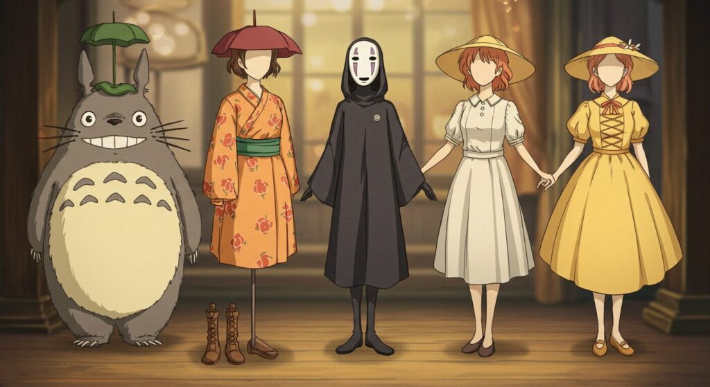 従来の「コスプレ」のように完璧にキャラクターになりきるのではなく、色使いや雰囲気、小物などでジブリの世界観を表現する「バウンドコーデ」が、ファッション感度の高い人たちの間で密かにブームになっているのです。まるで、お気に入りのジブリ作品をそっと身にまとうような感覚ですね!