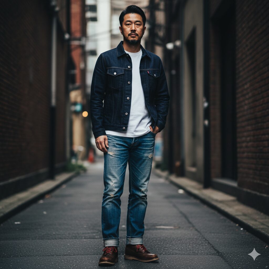 3.1. デニムの絶対的優位性:501と濃紺ジャケットの美学 (H3)