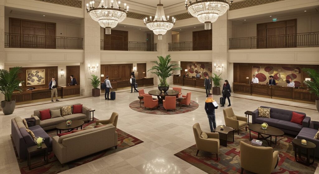 ヒルトンは「ドレスコードはありません」と公表しています。しかし、これは決して何を着てもいいという意味ではないんです。公式見解を深読みすると、「備え付けのナイトウェアやスリッパはNG」と明確に記載されています 。これはつまり、ホテル側がお客様の「良識」にその判断を委ねている、というメッセージだと予想できます。