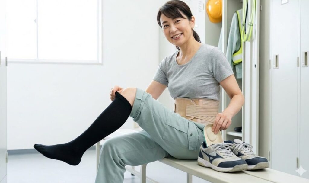 これはもう、全人類に勧めたい! ふくらはぎを締め付けるハイソックスタイプのあれです。 作業中に履いておくだけで、夕方の「足のむくみ」と「重だるさ」が劇的に変わります。ズボンの下に履けば見えないので、男性用・女性用問わずドラッグストアで買えるものを1足用意してください。