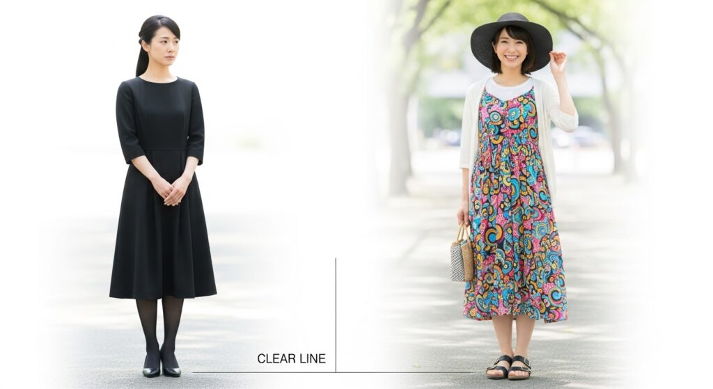 さて、いよいよ本題です。納骨式の服装に関する最大の不安は、「平服と普段着のどこに線引きがあるのか?」という点に尽きます。この境界線を曖昧にしてしまうと、せっかく準備しても「あれ?私だけ場違い…?」と後悔することになりかねません。