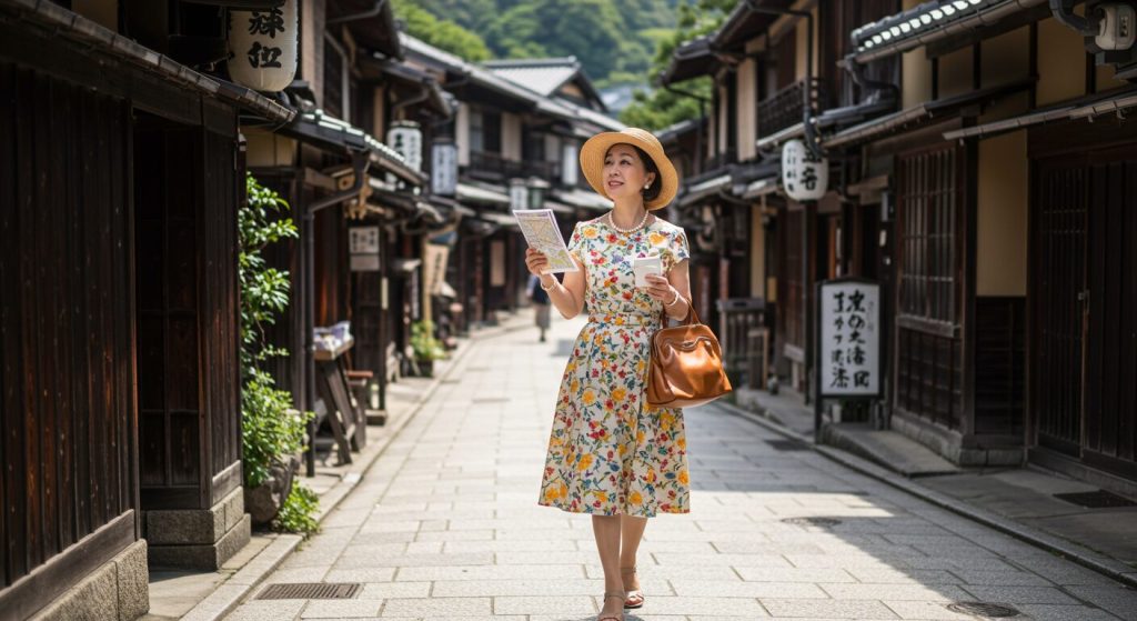 見た目の印象だけでなく、「実用性」と「快適さ」が、60代の京都旅行の服装において非常に重要だということです。なぜなら、旅先での不快感や、周囲からの視線への懸念は、せっかくの旅行の楽しさを半減させてしまうからです。