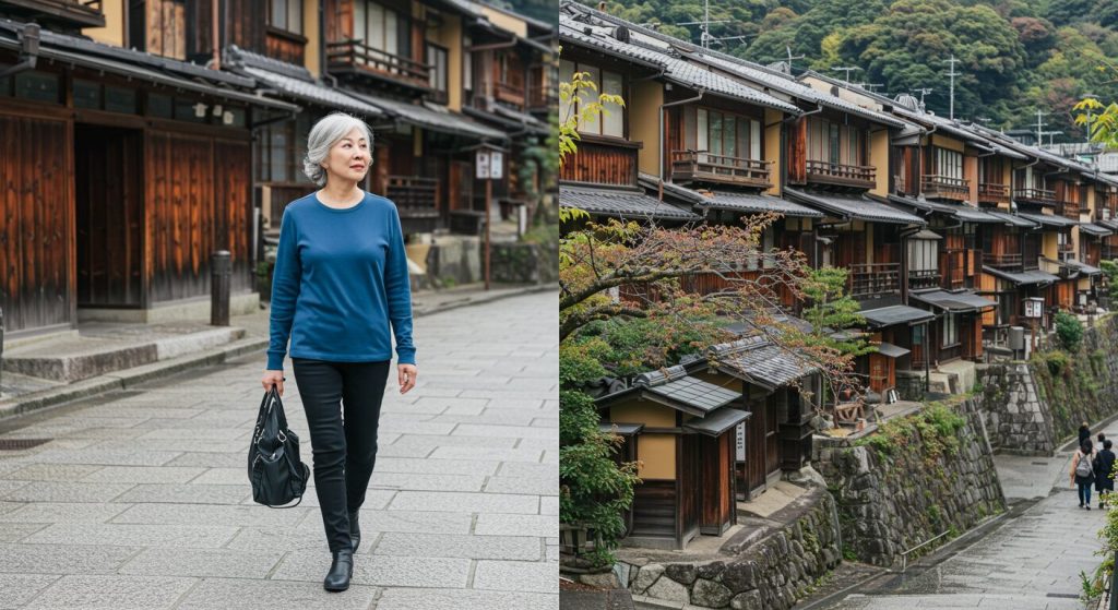 若い頃とは違う体力の変化や、体温調節の難しさ、そして何よりも「品良く、でも無理なくおしゃれを楽しみたい」というお気持ち、とてもよく分かります 。まさに、この「快適性」「機能性」「品格」のバランスこそが、60代の京都旅行を成功させるための“基本のき”なのです 。