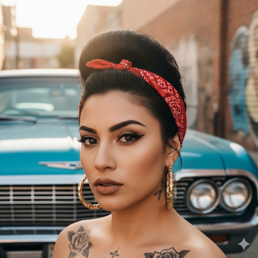 さらに本格的に挑戦したいなら、前髪をふんわりと立ち上げたポンパドールがおすすめです。これは1940年代のチカーノ・カルチャーにルーツを持つ、歴史的なスタイルです。少しレトロでエレガントな雰囲気が加わり、周りの人と差をつけることができます。
