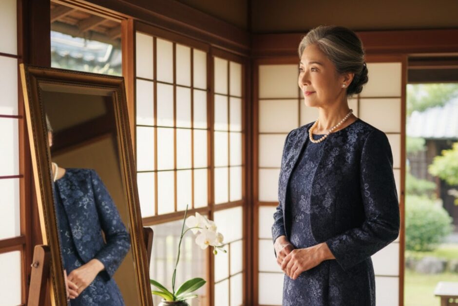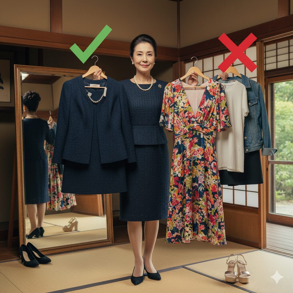 お気持ち、本当によくわかります。顔合わせは両家にとって「一度きりの、格付けチェック」のようなもの。マナーに疎いと思われたり、相手の母親より浮いてしまったりするんじゃないかと、不安でいっぱいですよね。特に60代の母親にとって、品格を保ちながら体型の変化に対応し、長時間座っても楽な服を選ぶのは至難の業です。