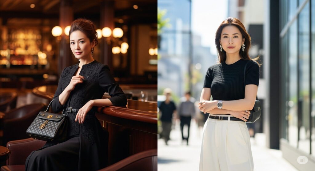 この記事では、これから港区の煌びやかな世界に足を踏み入れるあなたが、「自信」という最強のアクセサリーを身につけるための服装戦略を、こっそりお伝えしますね♪