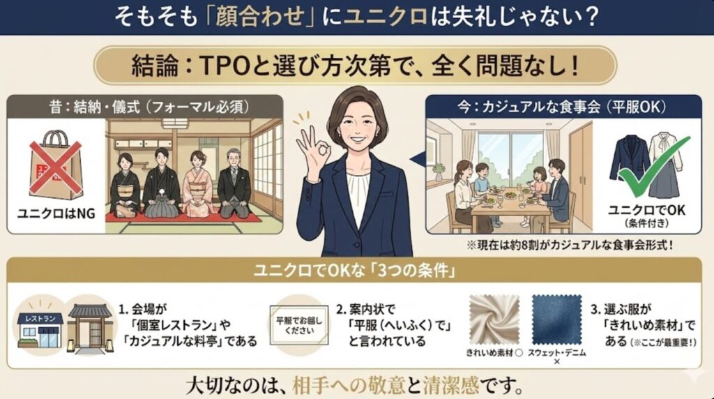 そもそも「顔合わせ」にユニクロは失礼じゃない?