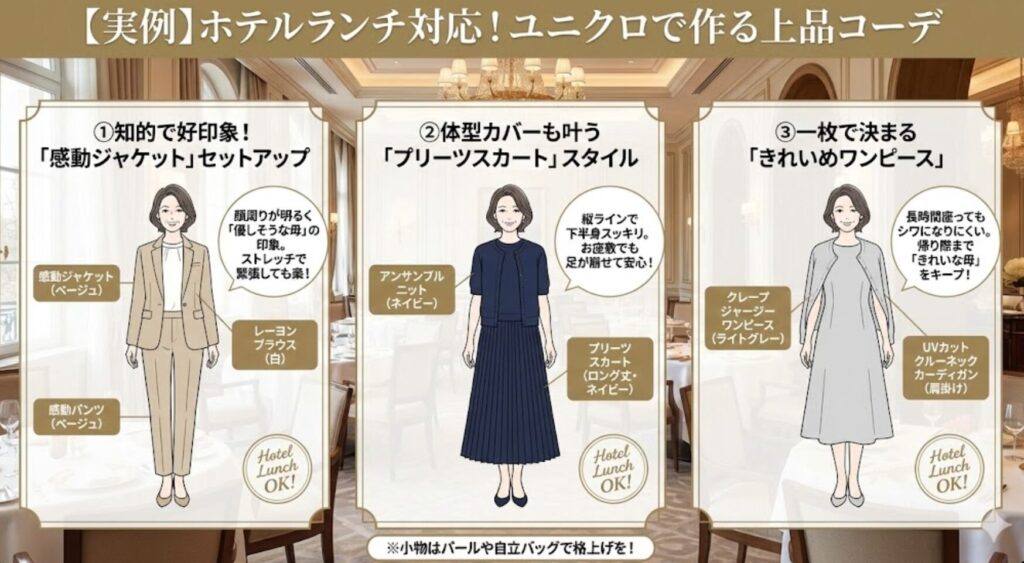 【50代母親】顔合わせはユニクロで乗り切れる!失礼にならない「高見え」コーデ実例【ホテルランチ・料亭もOK】