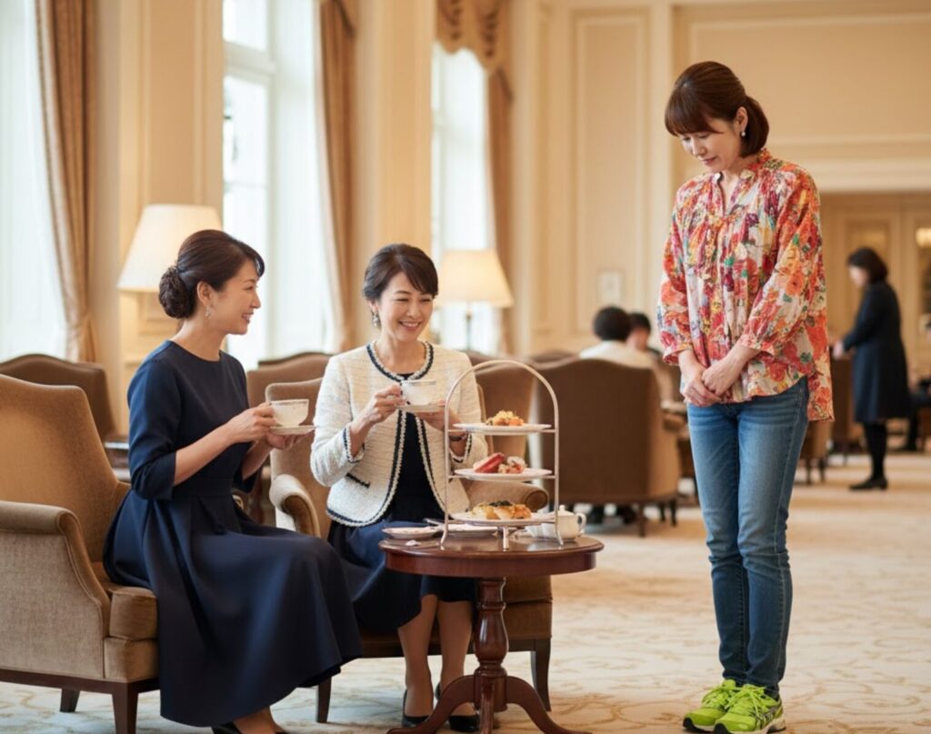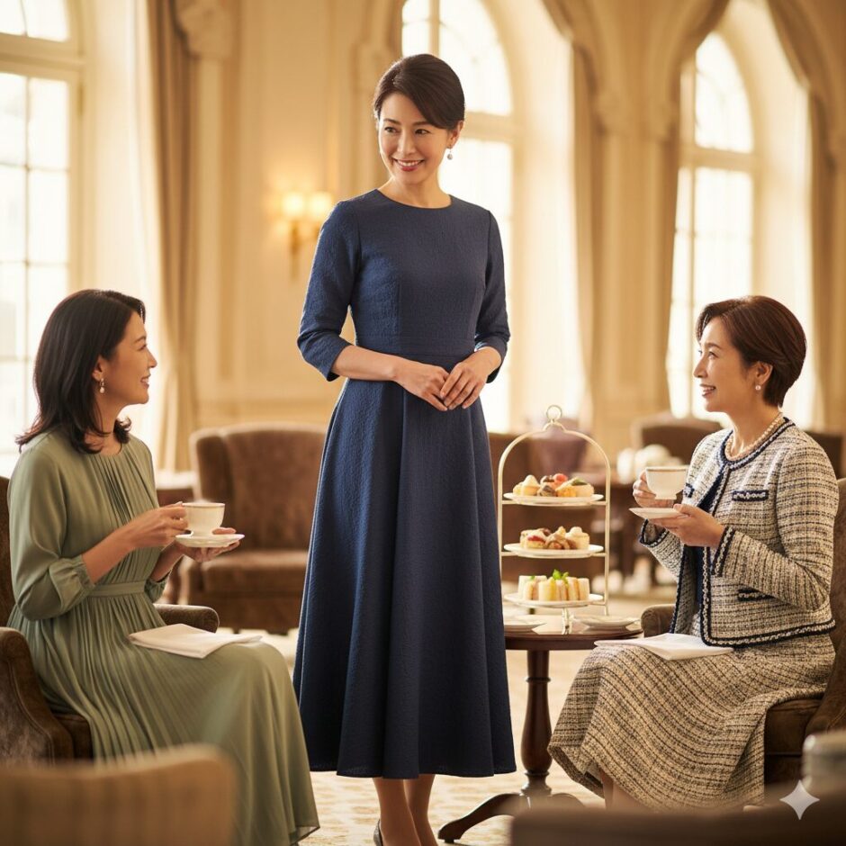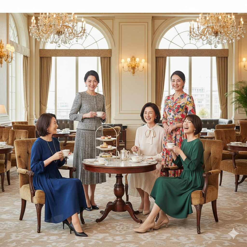 50代の私たちがヌン活の服装選びで最も恐れるのは、「周囲から浮いてしまうこと」や「品がないと思われてしまうこと」ですよね。ヌン活は単なる食事ではなく、優雅な空間体験と社交の場ですから、服装はその空間への敬意を示す手段となります 。