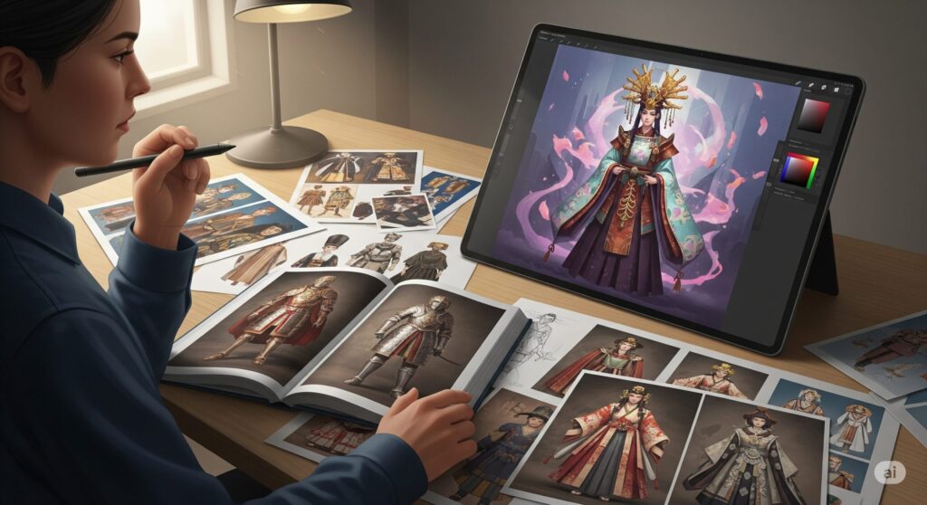 さあ、いよいよ創作タイムです。ここからは、先ほど学んだ知識をベースに、物語性のある衣装を生み出すための具体的な方法を3つ紹介します。