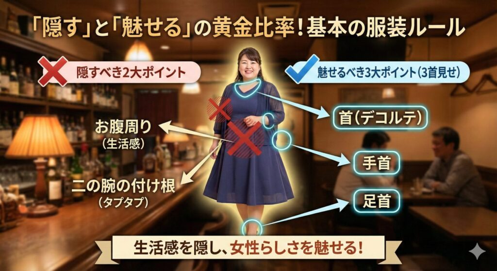 服装を選ぶ前に、まずは自信を持ってください。あなたが「隠したい」と思っているその脂肪は、夜の世界では「資産」になります。