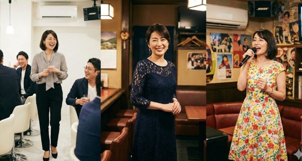 そんな40代ぽっちゃりさんのために、スナックのシーン別おすすめコーデをご紹介します! これを読めば、どんなお店でも自信を持って楽しめるはず♪
