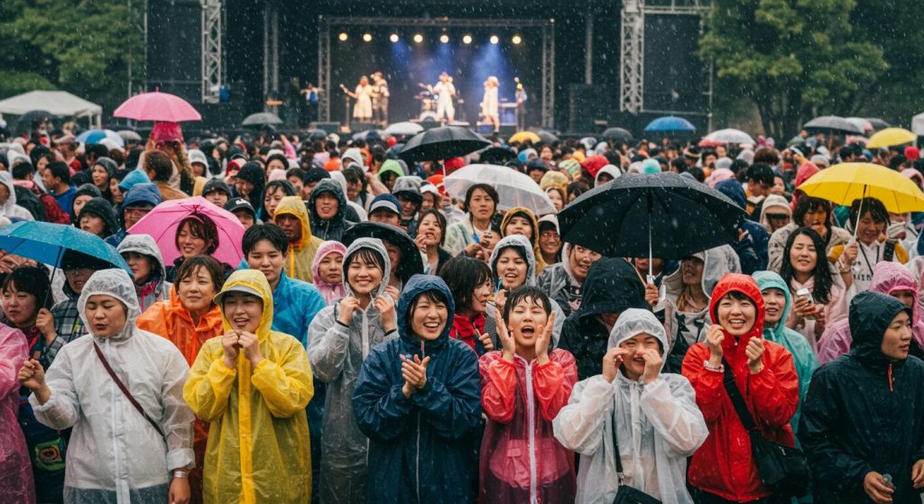 「さっきまで晴れてたのに、急に土砂降り! 」フェスあるある! 特に野外フェスは、天候が変わりやすいので、対策が重要です。