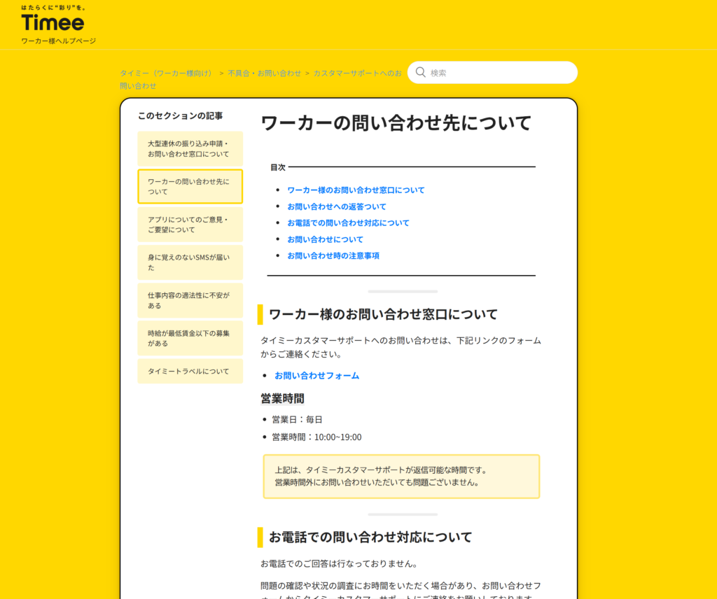 求人情報に担当者の連絡先が載っている場合は、直接連絡してみましょう。 - Timeeサポートへの連絡: