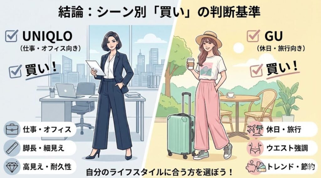 まとめ:どっちが神パンツ?ユニクロvsGU「タックワイドパンツ」