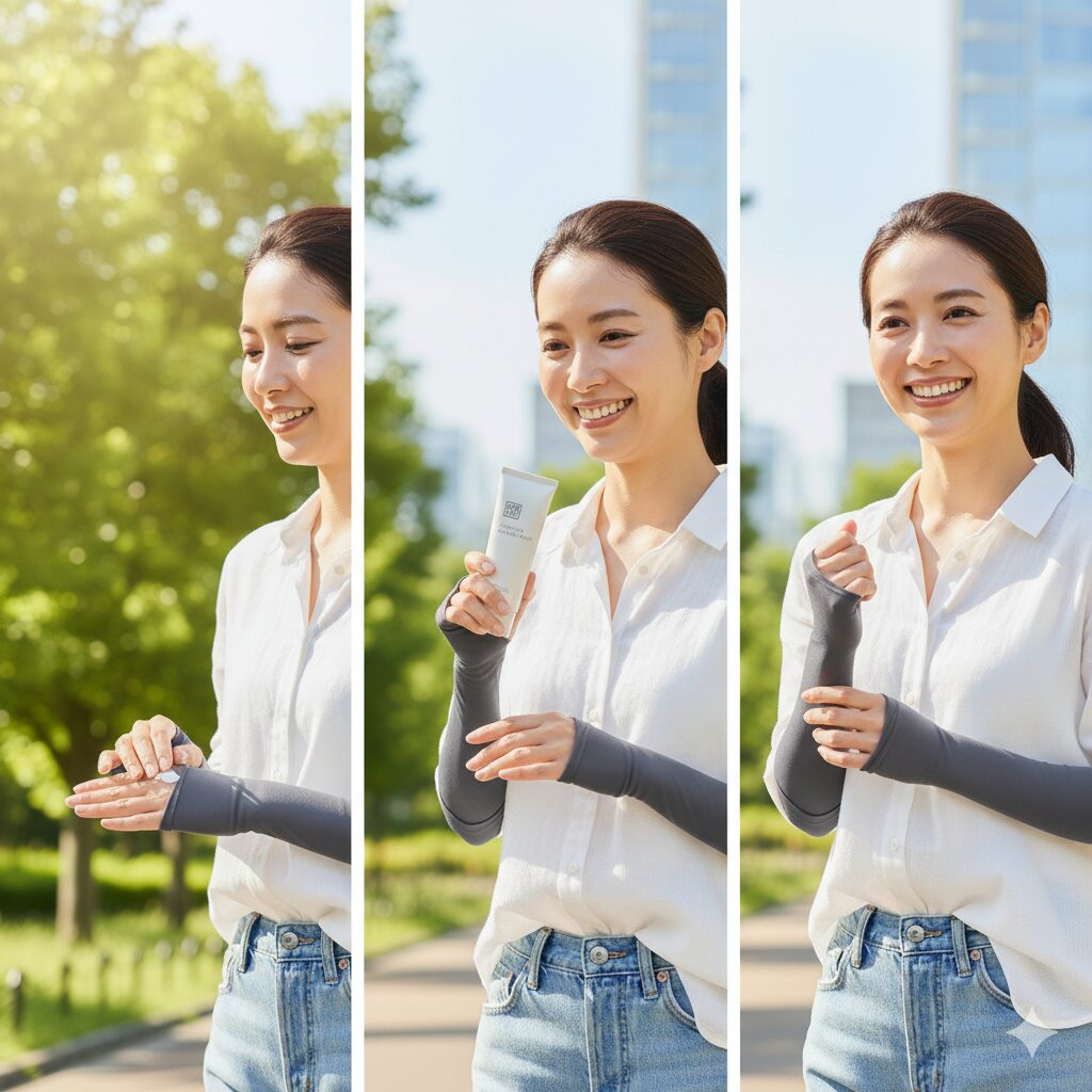 併用対策:日焼け止めはアームカバーの「境界線ガード」
