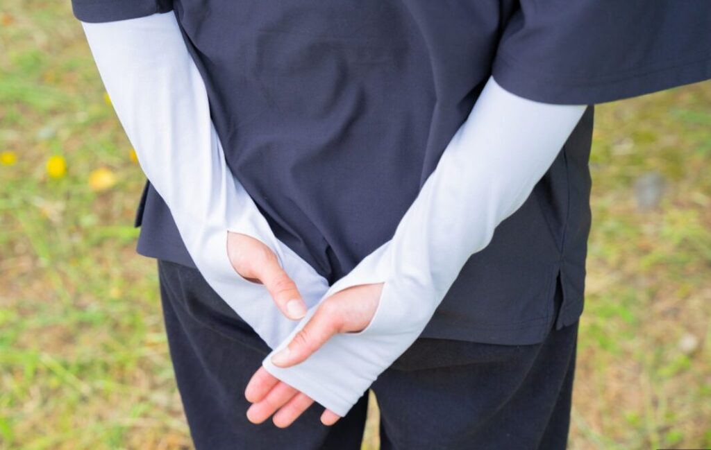 どんなに完璧に着用しても、アームカバーの端、つまり手首や指の付け根、服の袖との境界線は、日焼け止めのように肌に密着していないため、露出が生じやすいエリアです 。