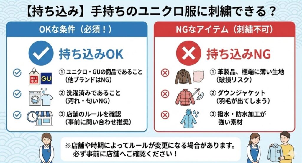 昔買ったユニクロの服があるんだけど、これを持ち込んでも刺繍してくれるの?