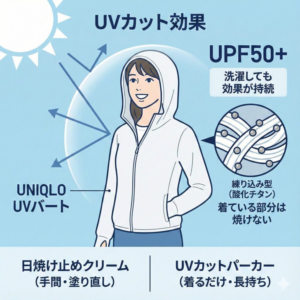 この記事では、ユニクロUVカットパーカーがなぜ「着る日焼け止め」として最強なのか、その科学的な理由と、絶対に失敗しない選び方を、ちょっとマニアックに(でも分かりやすく♪)解説していきます。