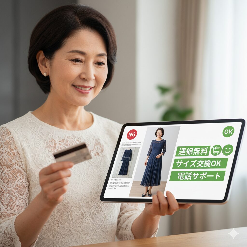 と、通販に対する心理的な障壁を感じているシニア層は少なくありません 。この不安こそが、せっかく決意した購入をためらわせる最大の壁なんですね。