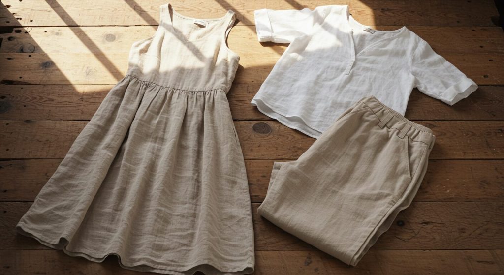 リネンやコットンなど、自然素材で、リラックス感を出す。